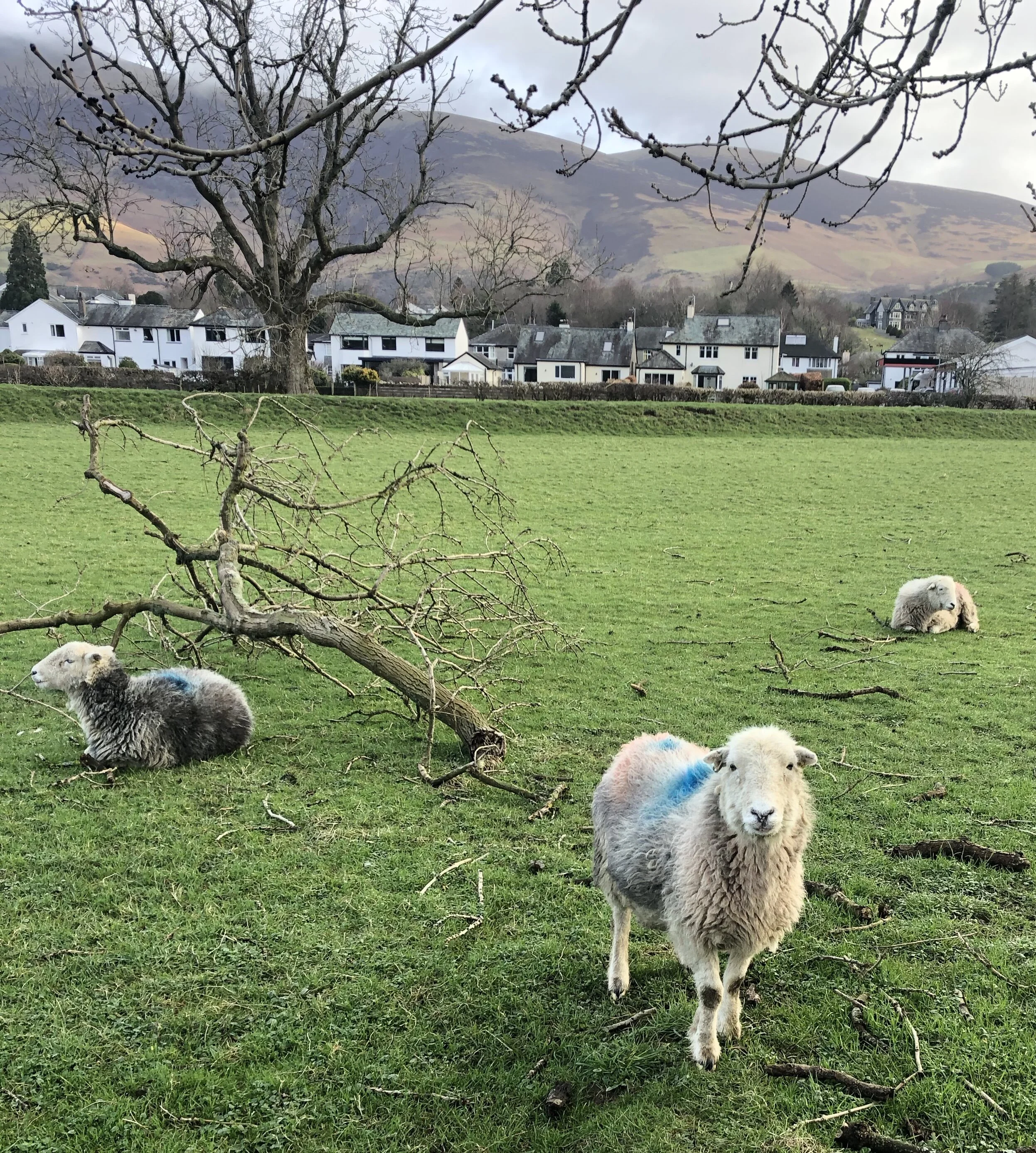 Sheep in fields next to the Howrahs footpath between Portinscale and Keswick